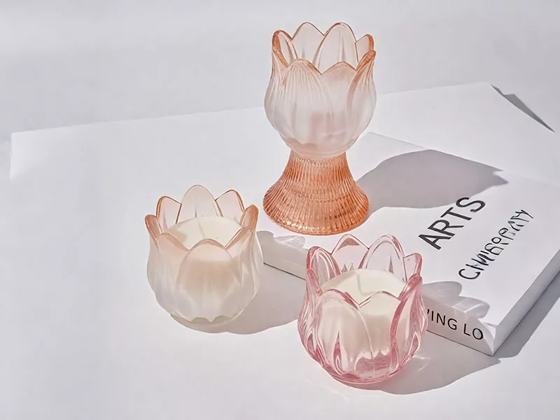 5. 유리 캔들 홀더: 고급 환경을위한 금/은 액센트가있는 강화 유리 옵션.