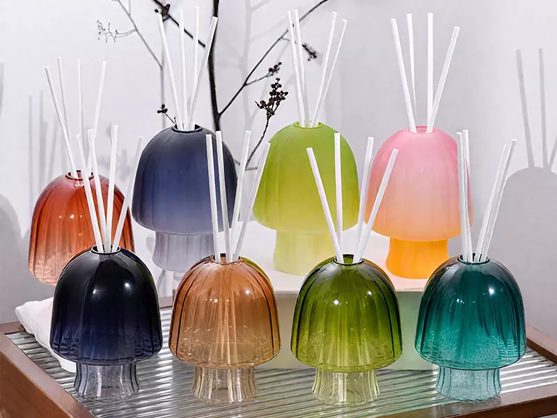 4. 디퓨저 : 매끄러운 유리 디퓨저베이스가있는 아로마 디퓨저.