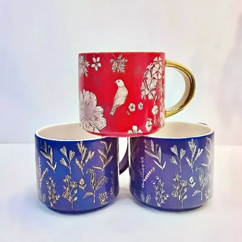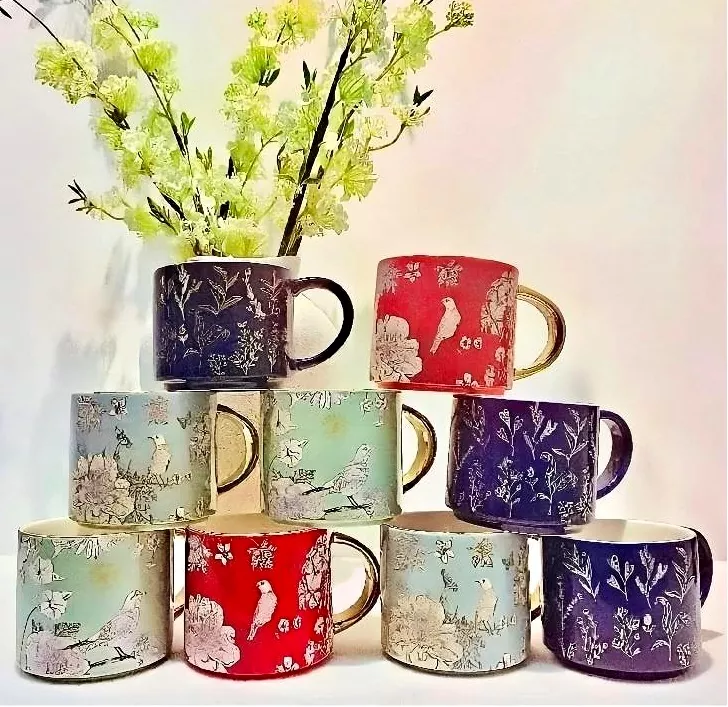 데칼로 세 심하게 제작 된 전기 도금 금 손잡이가있는이 세라믹 머그잔은 자연에서 영감을 얻은 독특한 매력을 구현합니다. 꽃이 피는 꽃의 섬세한 질감, 생생한 새들의 새들 또는 자연스러운 색상 블록의 매혹적인 패턴이든, 머그잔은 섬세하게 동식물, 동물 군, 생생한 색상의 선물을 캡처합니다. 모든 스타일에 맞게 머그잔의 손잡이를 사용자 정의 할 수 있습니다. 금도금 버전은 18k 골드와 유사한 풍부하고 황금색 색조로 빛나며 정교함을 더합니다. 좋아하는 색상으로 사용자 정의 할 수도 있습니다.