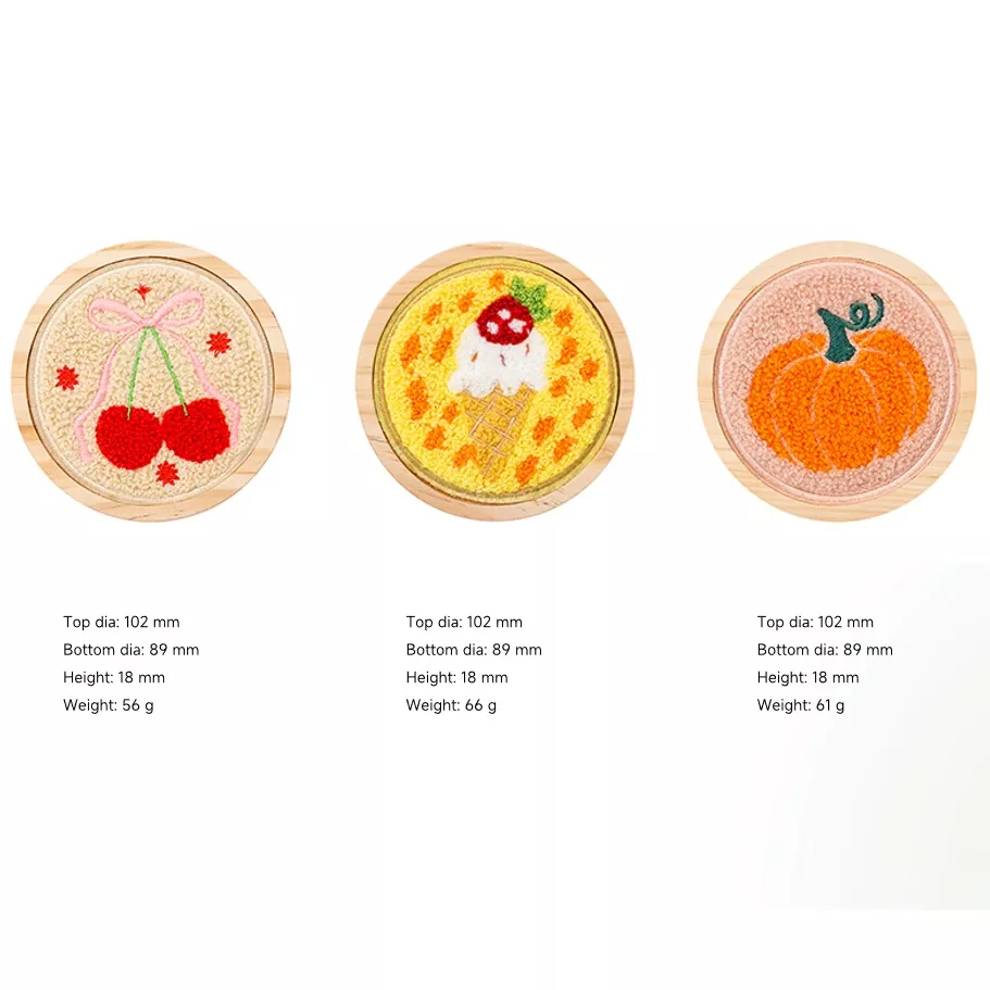 BYF의 귀여운 수제 친환경 나무 뚜껑은 천연 나무 프레임과 화려한면 실에서 세 심하게 짜여져 있습니다. 각각은 활기차고 풍부한 색상과 따뜻하고 수제 느낌을 가진 독특한 3 차원 패턴 (예 : 호박, 체리 및 케이크)을 특징으로합니다. 나무의 가장자리는 손으로 조심스럽게 둥글게되며 단단히 직조 된 질감은 미세한 해자 역할을하여 먼지와 공기가 병에서 멀리 유지됩니다. 뚜껑은 실란트로 작용하고 제거하면 천연 코스터입니다. 간단히 식탁이나 커피 테이블에 배치 된 것은 즉시 조용한 작은 나무 기능으로 바뀌어 일상 생활에 귀여움을 더합니다.