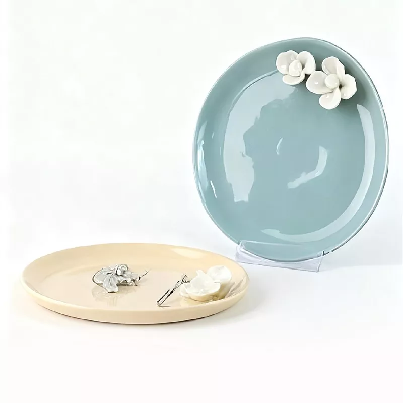미니멀리스트 Insta 세라믹 주얼리 접시는 선택할 수 있는 다양한 색상과 꽃 디자인을 제공합니다.
